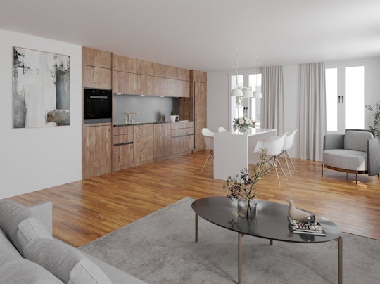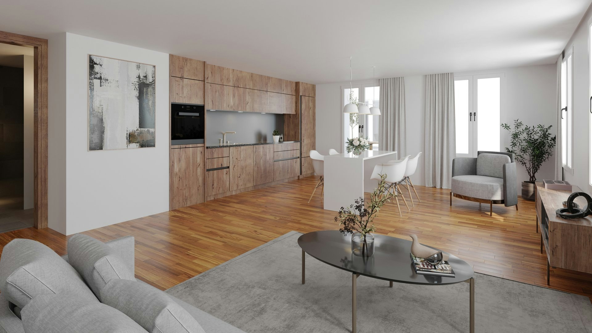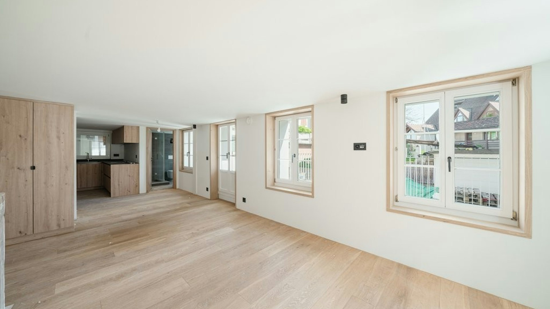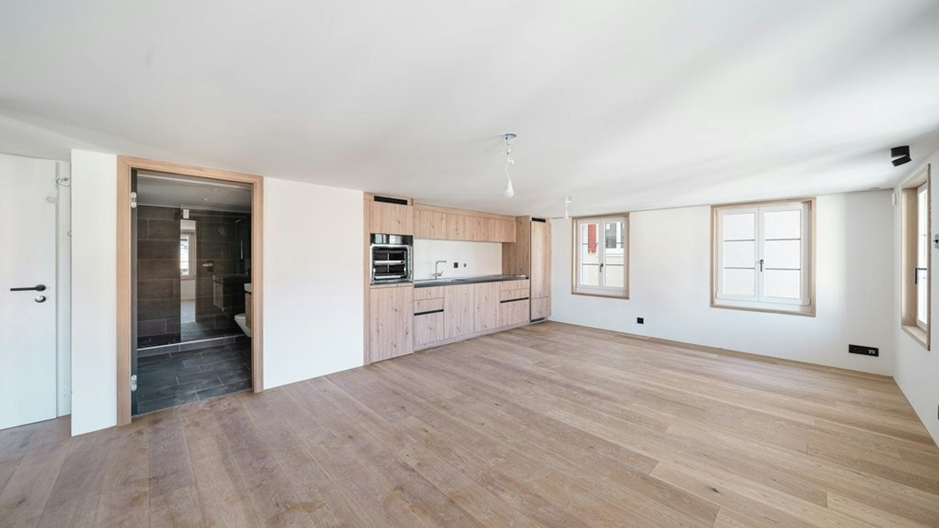Unsere hochwertig sanierten Wohnungen befinden sich zentral am Dorfplatz. Den Alltag bereichern die verschiedenen Restaurants, das Café mit Bäckerei und Konditorei unter uns, die Dorfmetzgerei, die Filialen von Coop und Denner, Drogerie, Bankfiliale sowie einem Hotel und weitere lokale Spezialgeschäfte.
